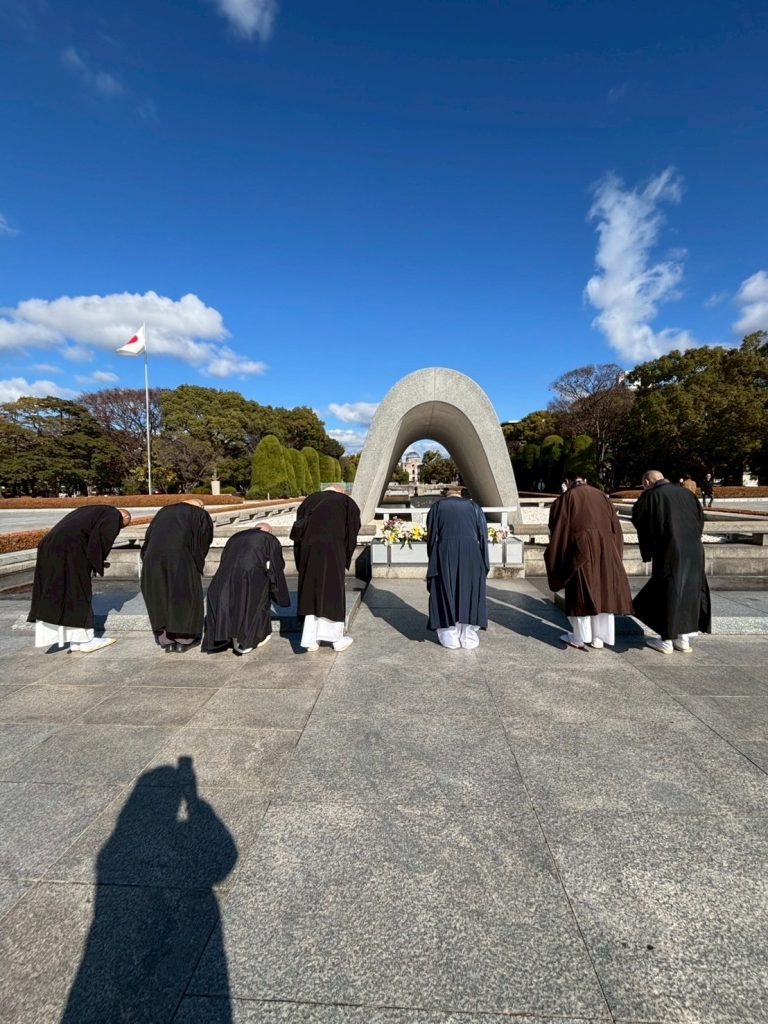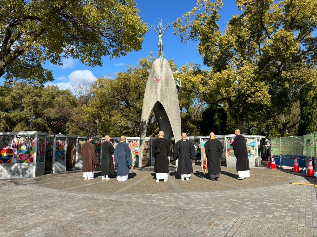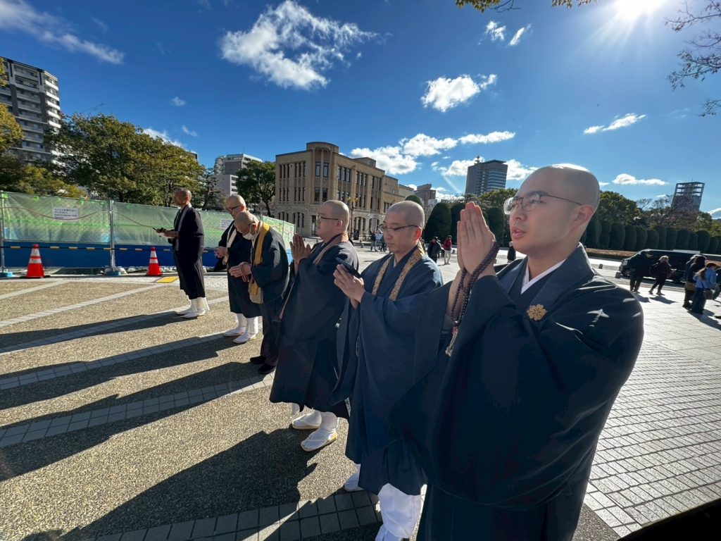 折り鶴を抱えた霊場会代表団は厳かに進行し、原爆慰霊碑に供養を真を捧げると、海外旅行者の皆様も心静かに合掌して見送られている姿に、世界平和の繋がりを深く感じました。