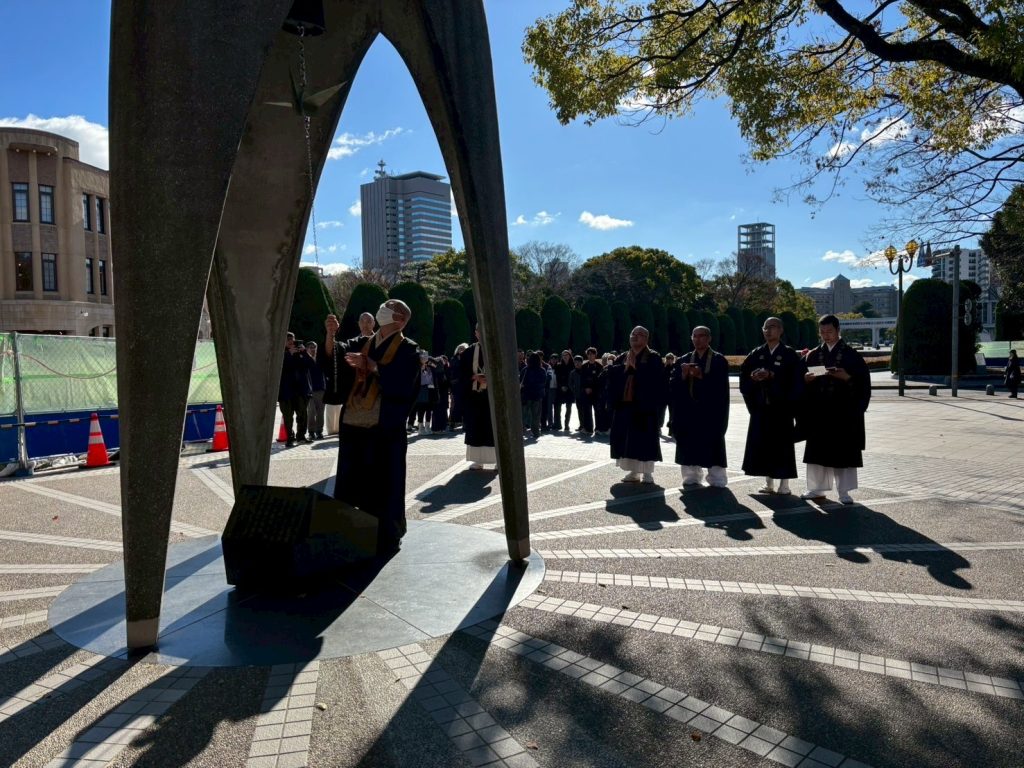 原爆の子の像では、中国観音霊場会小林会長より平和の鐘が鳴らされ、折り鶴は無事奉納されました。